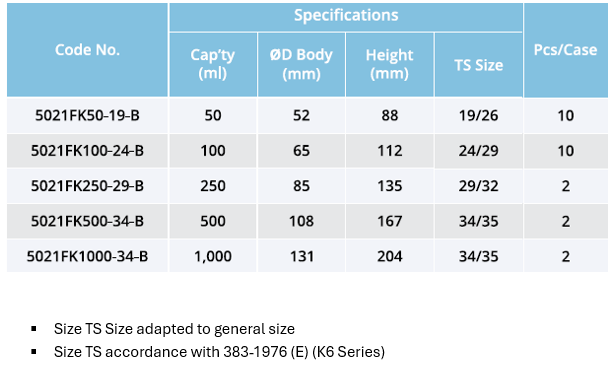 with TS Joint without Glass Stopper (ISO, K-6 Standard)