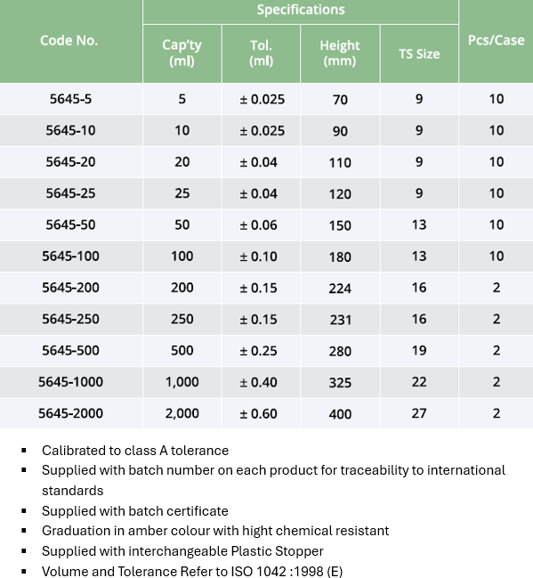Class A, Amber Graduation, Not Blow Out, ISO Specification