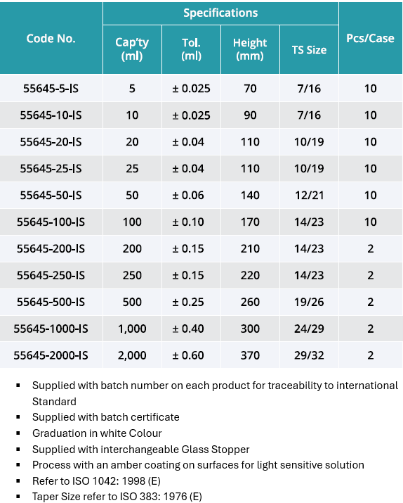 With Plastic Stopper, Class A, Coating Amber, ISO Specification