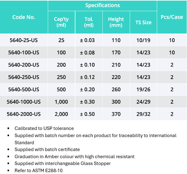 With Glass Stopper, Class A, Coating Amber, USP Specification