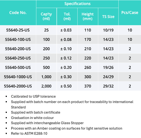 With Glass Stopper, Class A, Coating Amber, USP Specification